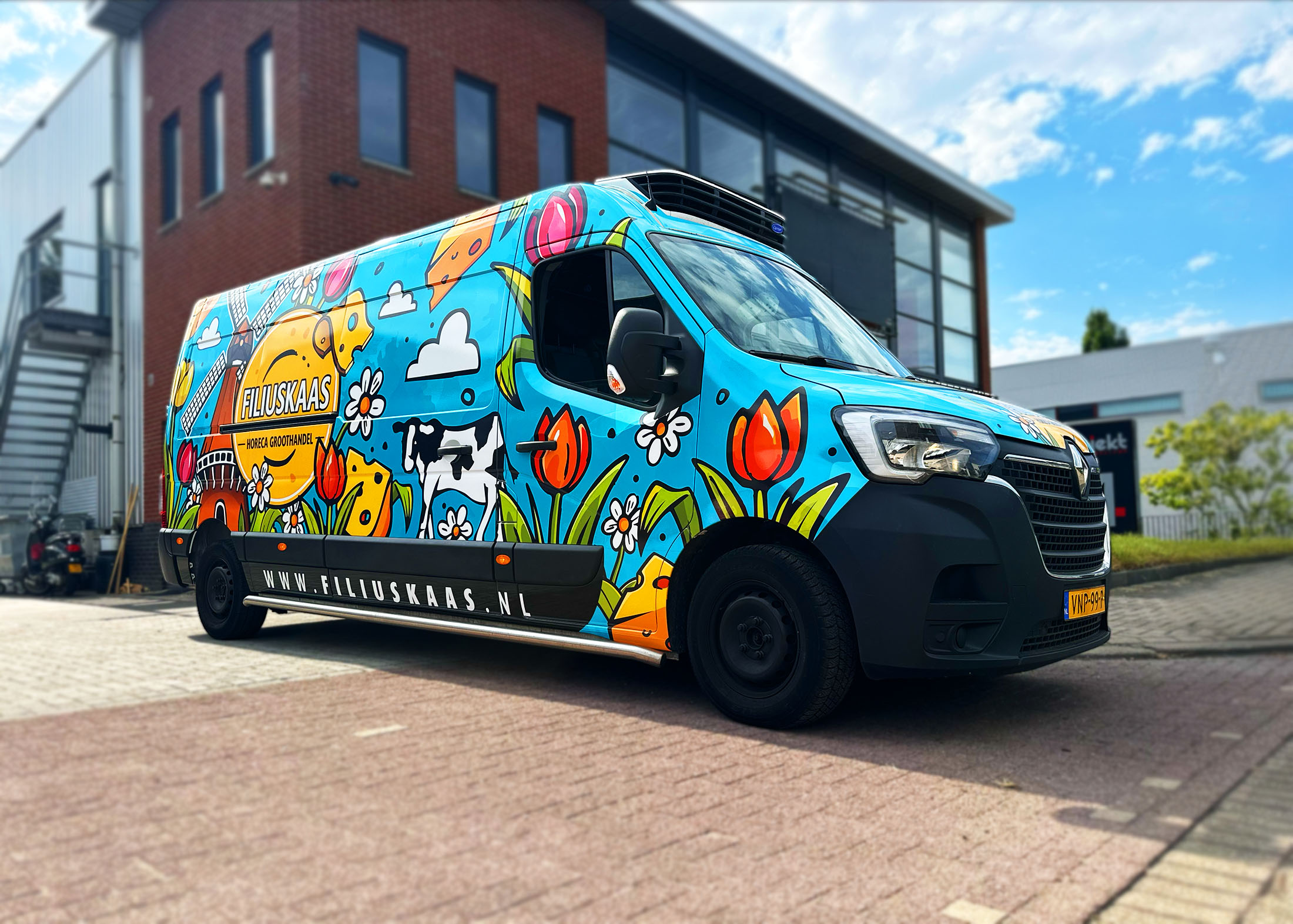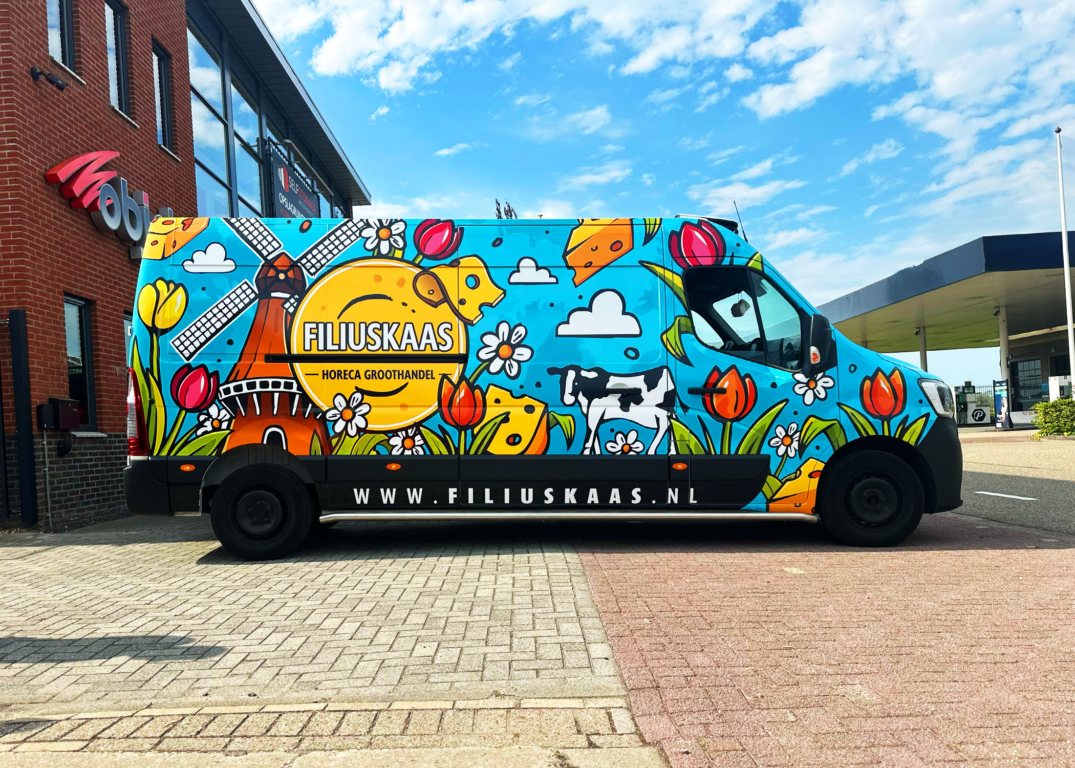 Voor mijn gewaardeerde klant Filiuskaas is een opvallende full wrap autobestickering ontworpen, welke meteen de aandacht trekt en bovendien de Hollandse roots benadrukt van het bedrijf. De opdracht was duidelijk: realiseer een creatieve en herkenbare bus die de aandacht van voorbijgangers trekt en daarnaast de merkidentiteit versterkt.